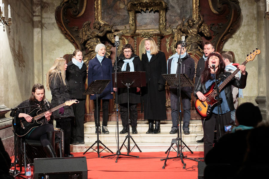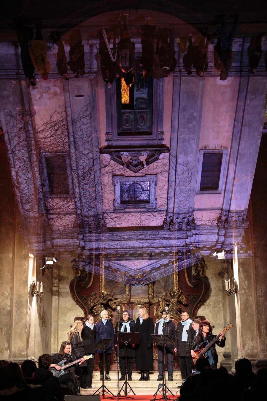 V torek, 15. 12. 2015, so v mrzlem zimskem hladu, ki je vel iz vseh kotov Križevniške cerkve v Ljubljani, nastopili duo All Strings Detached in osem pevcev KPZ Mysterium.